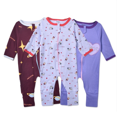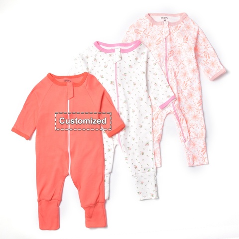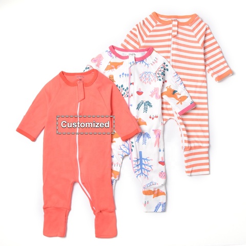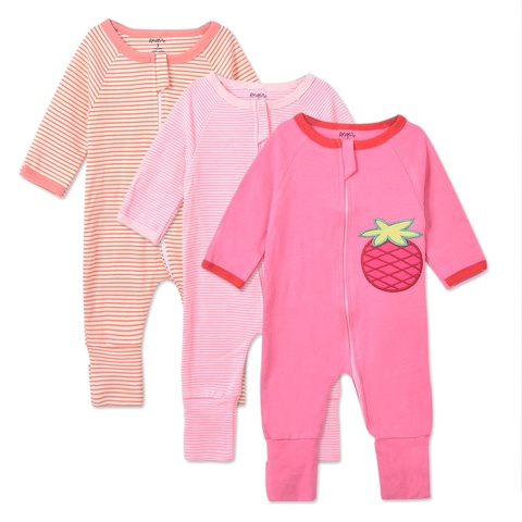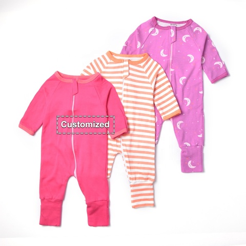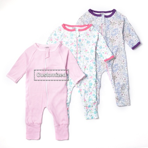 थोक बेबी लड़कियों के कपड़े नवजात शिशु लंबे समय से आस्तीन के साथ-साथ मिश्रित डिजाइन जिपर कपास बेबी पजामा
