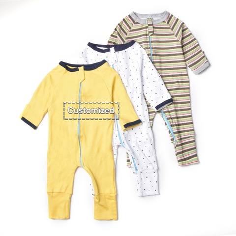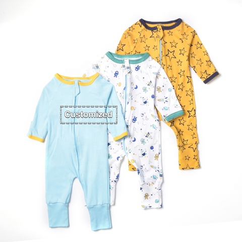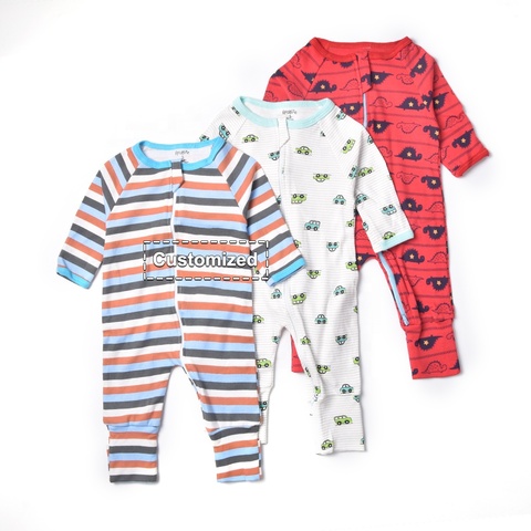 नवजात शिशु के कपड़े थोक बच्चे के रोपर कपड़े लंबे आस्तीन मिश्रित डिजाइन कपास बेबी पजामा जिपर