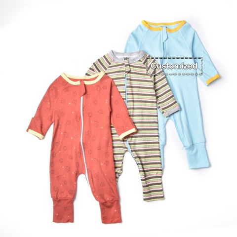 हॉट सेल नरम कपास यूनिसेक्स जिपर बेबी रोपर लंबी आस्तीन मिश्रित डिजाइन बेबी पजामा