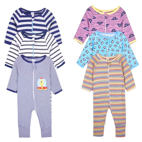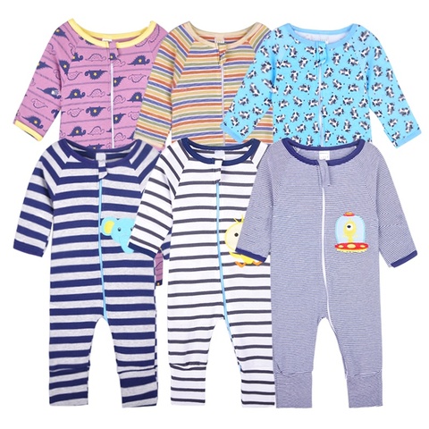 Thời Trang In Dài Tay Áo 100% Cotton Thiết Kế Ngẫu Nhiên Trẻ Sơ Sinh Trẻ Sơ Sinh Rompers Bé Đồ Ngủ Đồ Ngủ