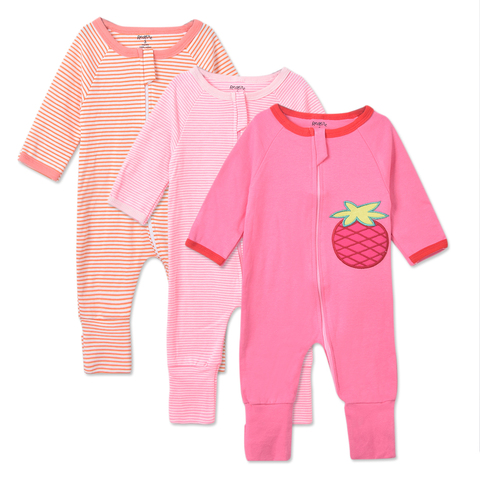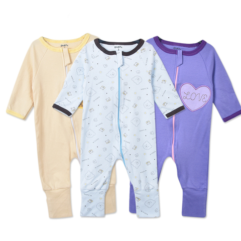 Thiết Kế Mới Dài Tay Áo Bán Buôn Thoải Mái Hỗn Hợp Thiết Kế Dây Kéo 3 cái/gói Bé Đồ Ngủ Bodysuit