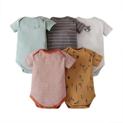 Barboteuse en coton de haute qualité, 5 pièces, imprimé manches courtes, body pour bébés garçons