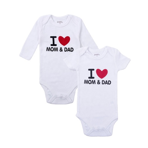 Impression de mode I Love MOM et DAD design Barboteuse blanche pour nouveau-né pour garçons et filles