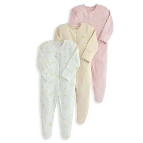 Yüksek kalite % 100% pamuk temel uzun kollu yenidoğan Romper rahat baskı Footie bebek pijama seti